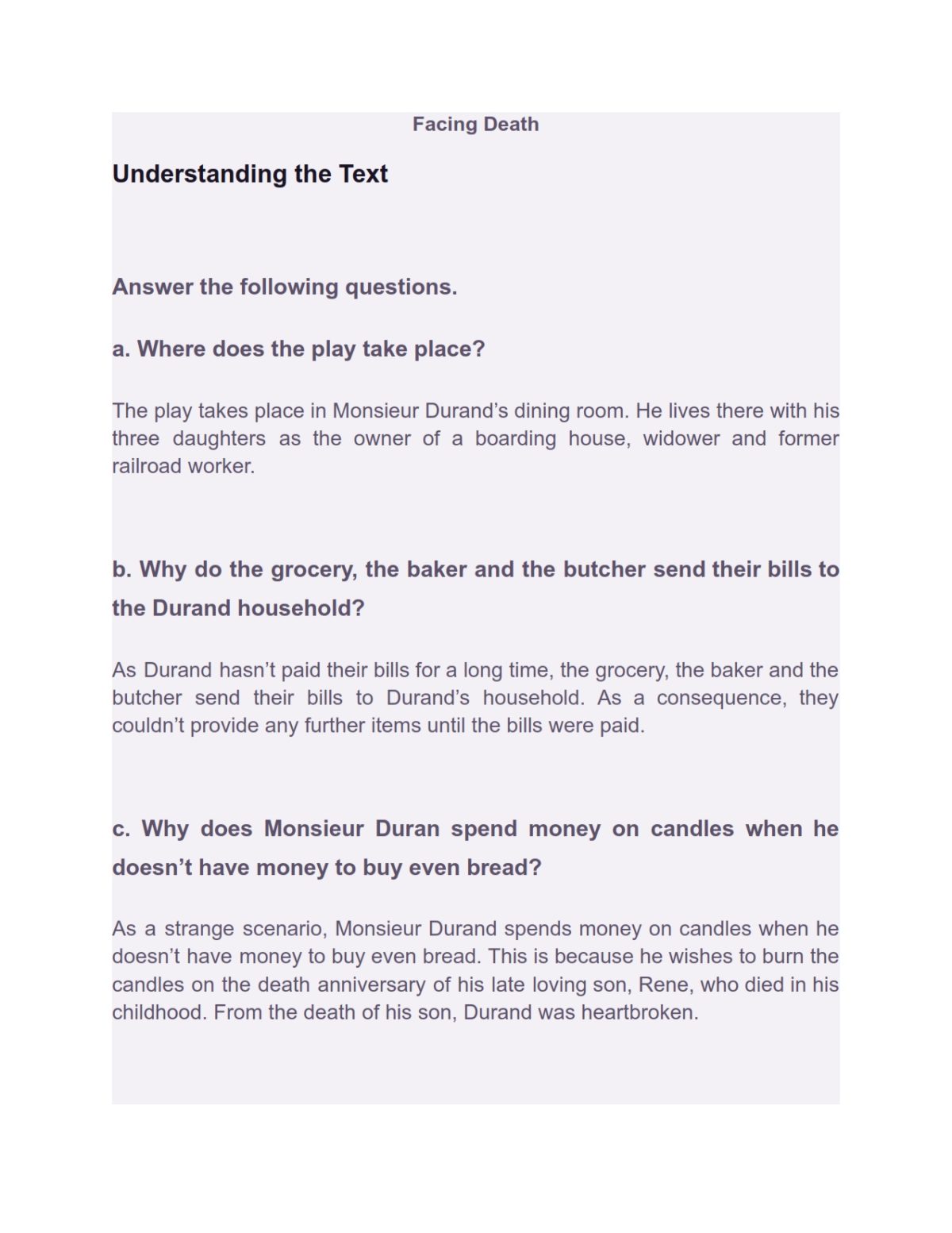 Full exercise of Facing Death : Summary and Question Answers | Literature | Class 12 English Notes